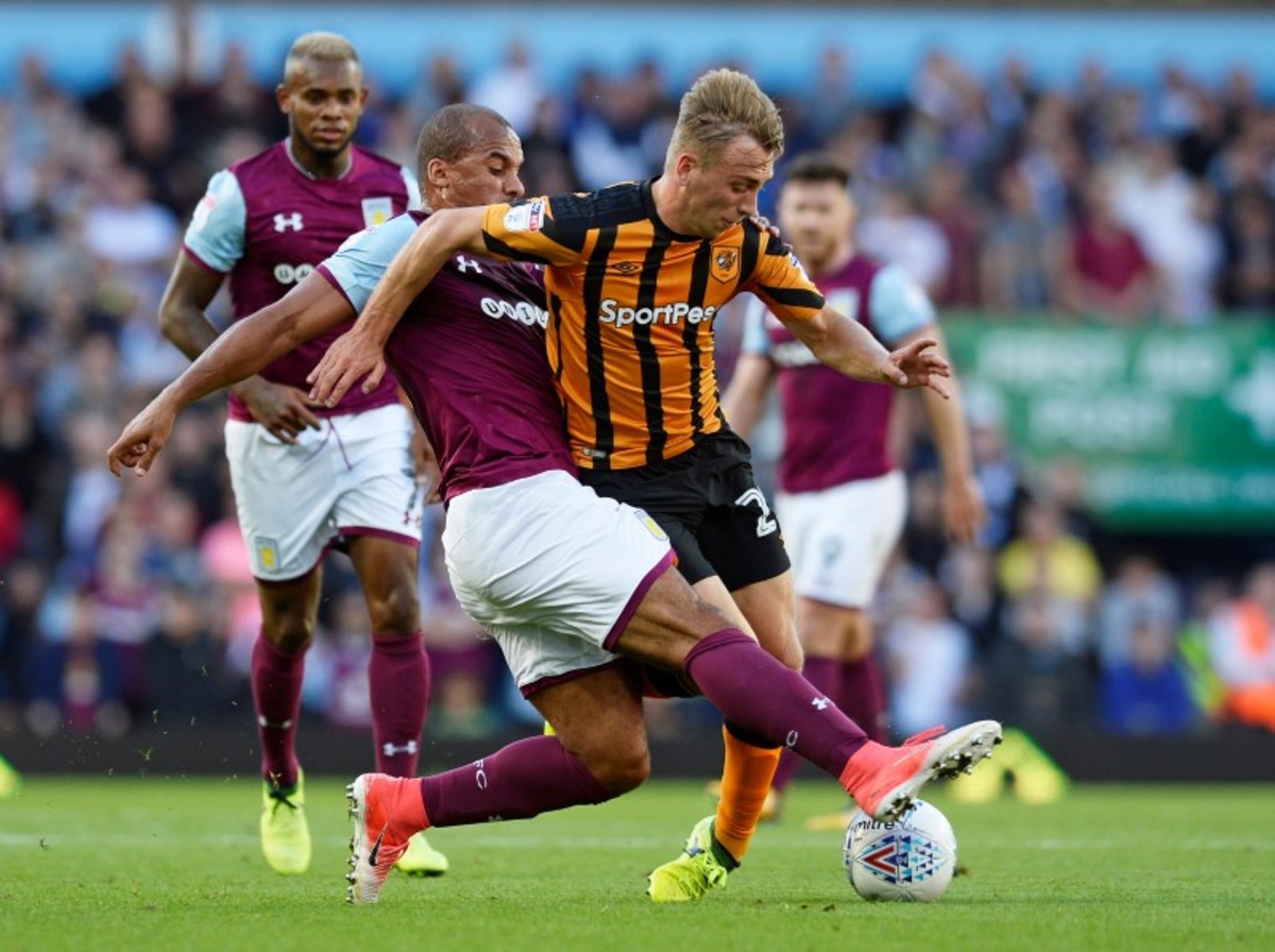 Soccer Football - Aston Villa vs Hull City - Championship - Birmingham, Britain - August 5, 2017 Aston Villa's Gabriel Agbonlahor in action with Hull's Adama Diomande Action Images/Alan Walter