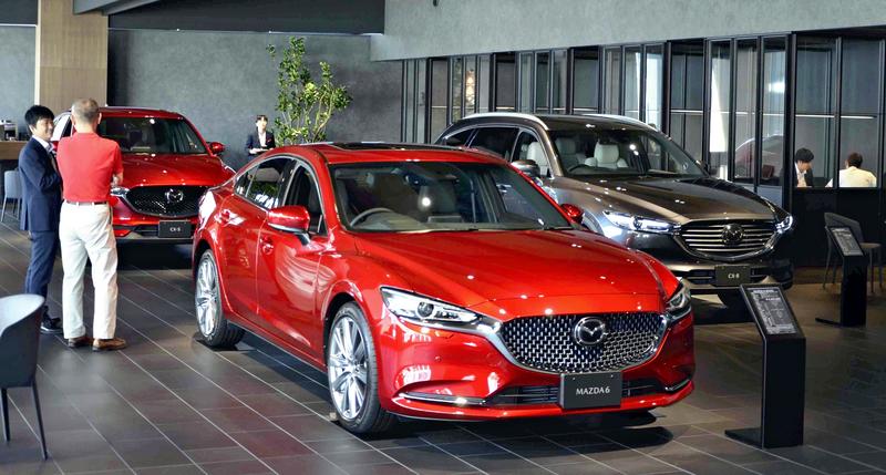 At the Itabashi main branch of Kanto Mazda Co., which operates Mazda's dealers, customers discussed price estimates using the 10 percent consumption tax rate Saturday. Most of the car models for which contracts are now being concluded at the branch, located in Itabashi Ward, Tokyo, will be registered from October on, according to the branch.