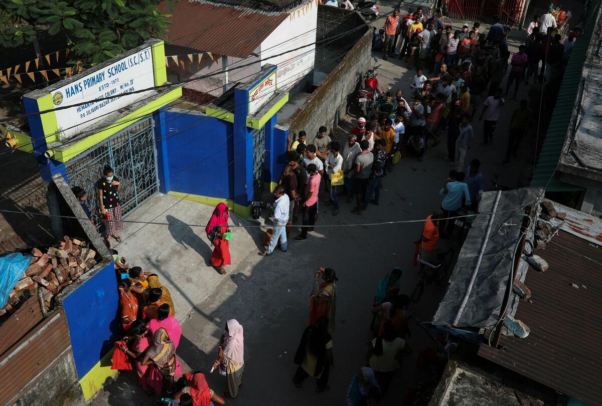 In Siliguri, many sleep on plastic sheets outside the vaccination centre, huddled up in blankets. Others play Ludo, a board game, as they keep vigil through the night in hopes of being first in line for a COVID-19 shot in the morning.
