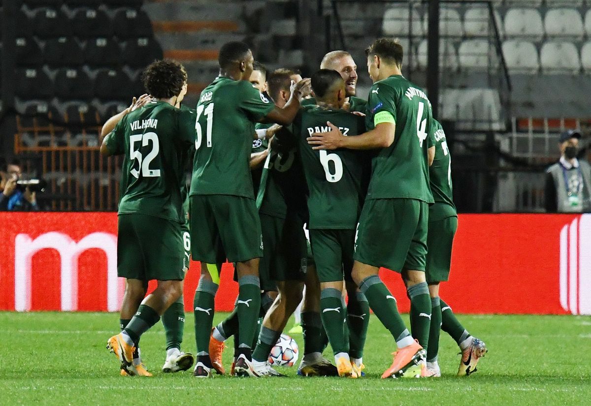 SALONIKA, Greece (Reuters) - Danish side Midtjylland qualified for the Champions League group stage for the first time in stunning fashion on Wednesday after scoring three goals in the last seven minutes to beat more fancied Slavia Prague 4-1 on aggregate in their playoff tie.