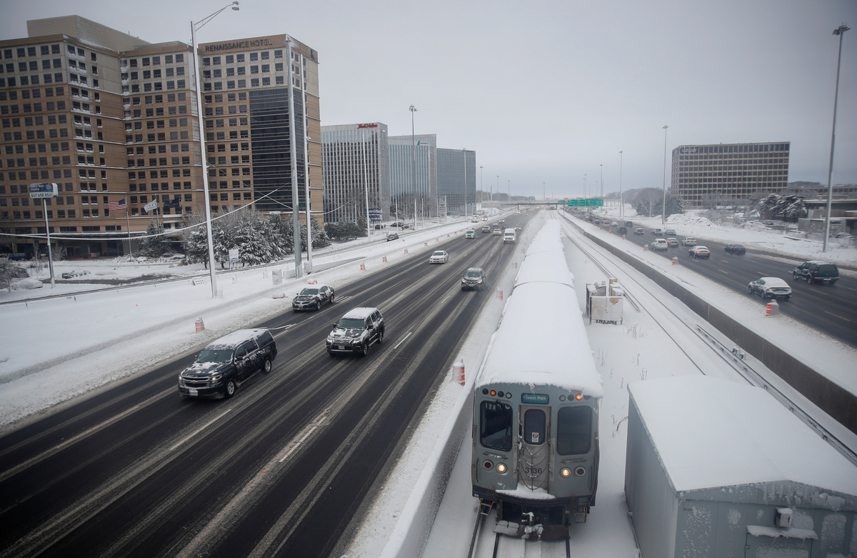 (Reuters) - Commuters in Chicago and across the Midwest faced inches of heavy, wet snow as they returned to work on Monday after the long U.S. Thanksgiving holiday weekend, with the storm knocking out power, icing roads and canceling hundreds of flights.