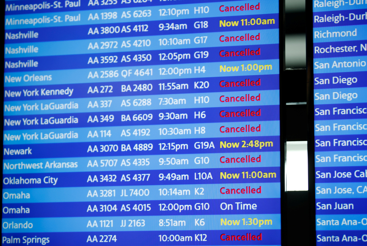 About 900 flights to and from Chicago O'Hare International Airport and Chicago Midway Airport were canceled as were almost 200 flights at Kansas City International Airport.
