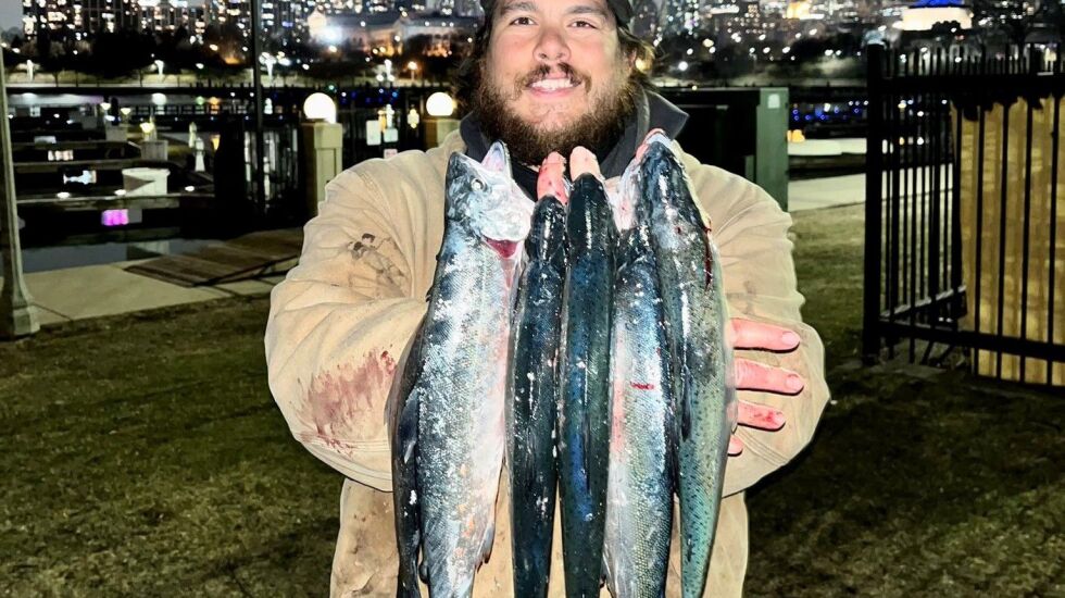 Capt. Dan Leslie at the Salmon Stop in Waukegan texted: