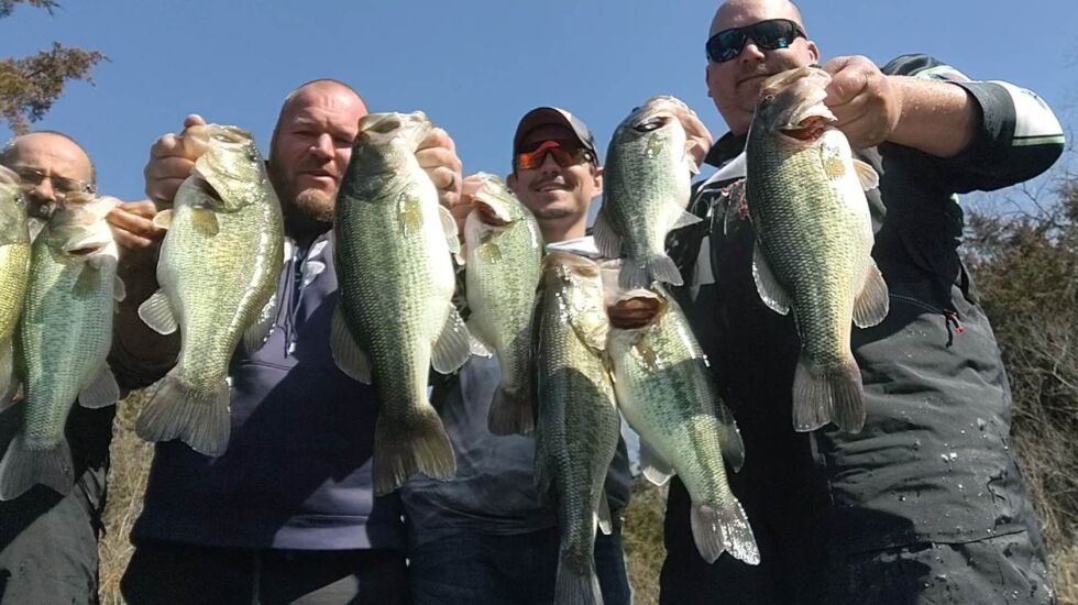 First time having 4 in the boat. Everyone still caught fish. Hot side 80. Mid pool 68/70. Cold side 58. Caught 47 bass. 8 stripers and a few cats. Not the numbers I’m used to opening day but still a great day with a great average size.