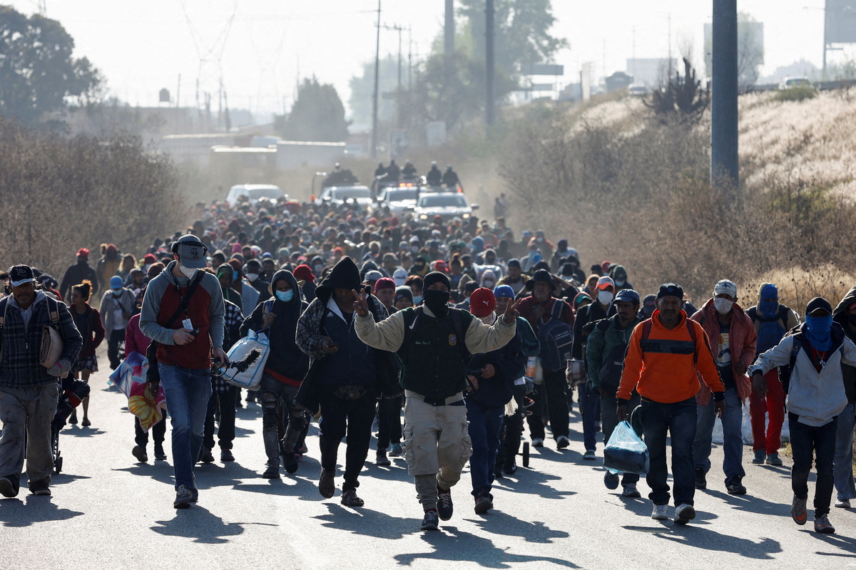 Migrants, many traveling with children, walked between autos and trucks and some even laid down to rest, a Reuters witness said. They had left the San Martin Texmelucan municipality in Puebla earlier on Thursday.