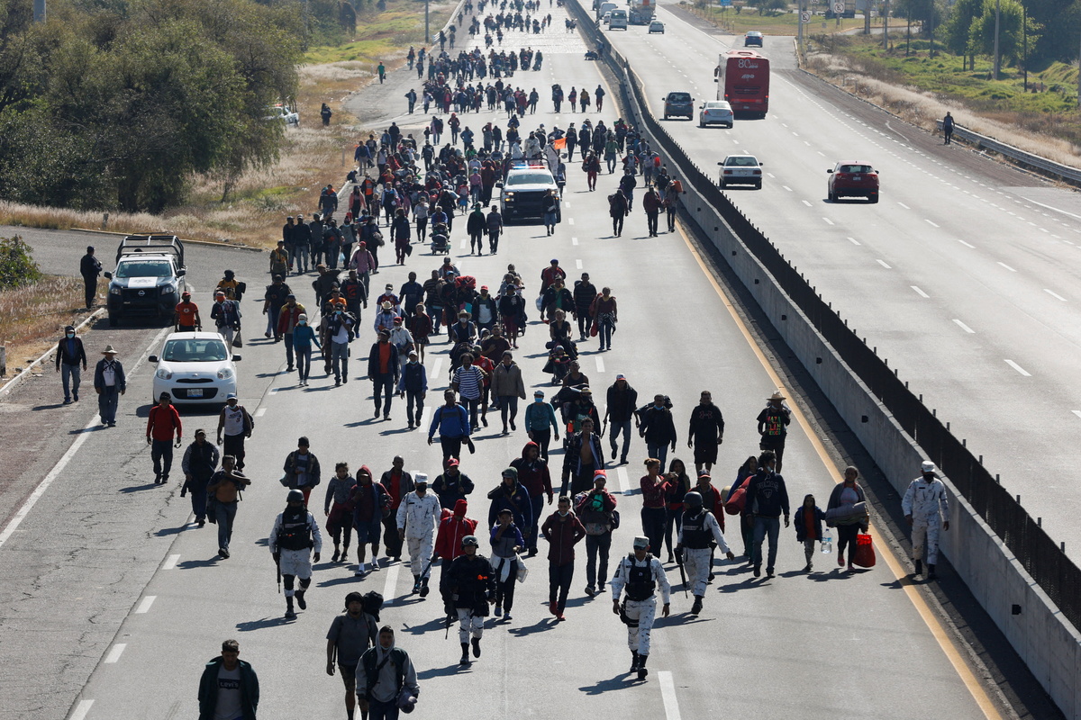 It was not clear if the migrants trekking on the highway were part of the group that had been transported by migration officials.