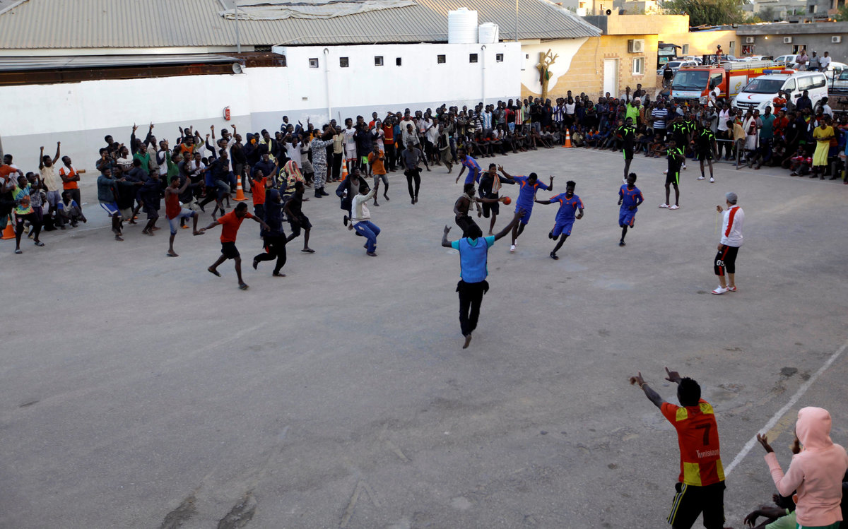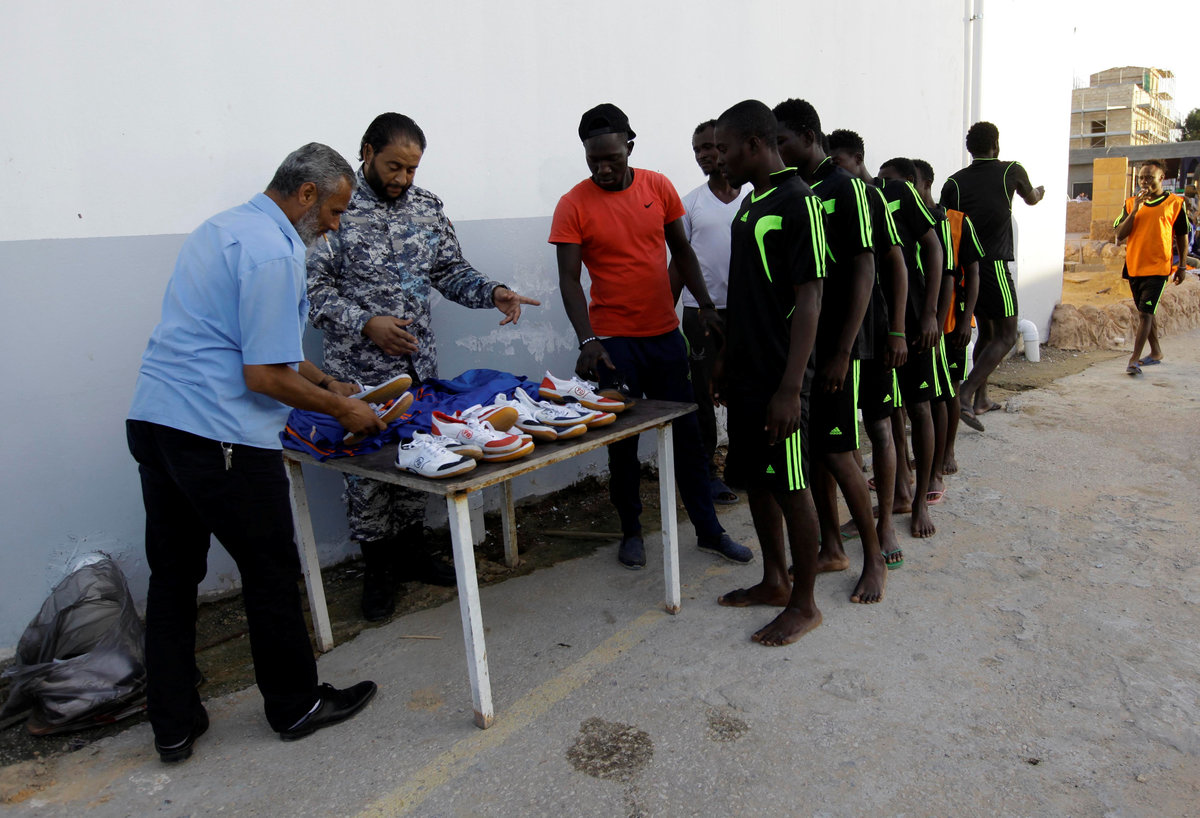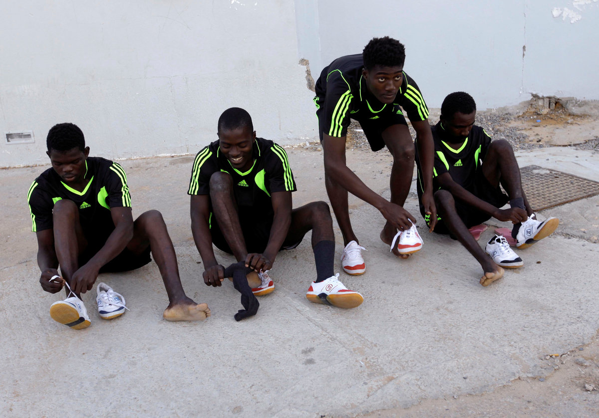 TRIPOLI (Reuters) - Detained in Libya and facing an uncertain future, migrants at one of Tripoli's biggest detention centres have at least one source of distraction: courtyard football.