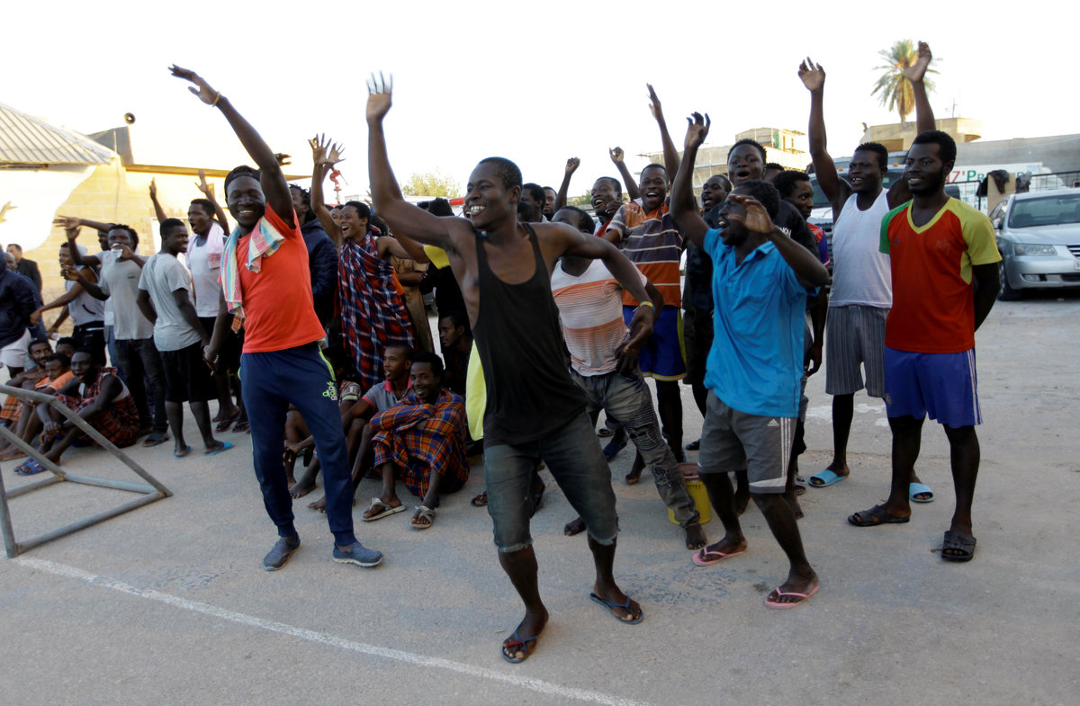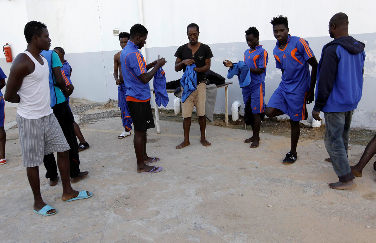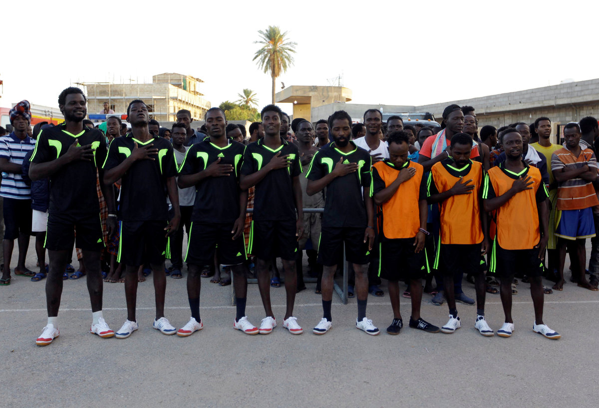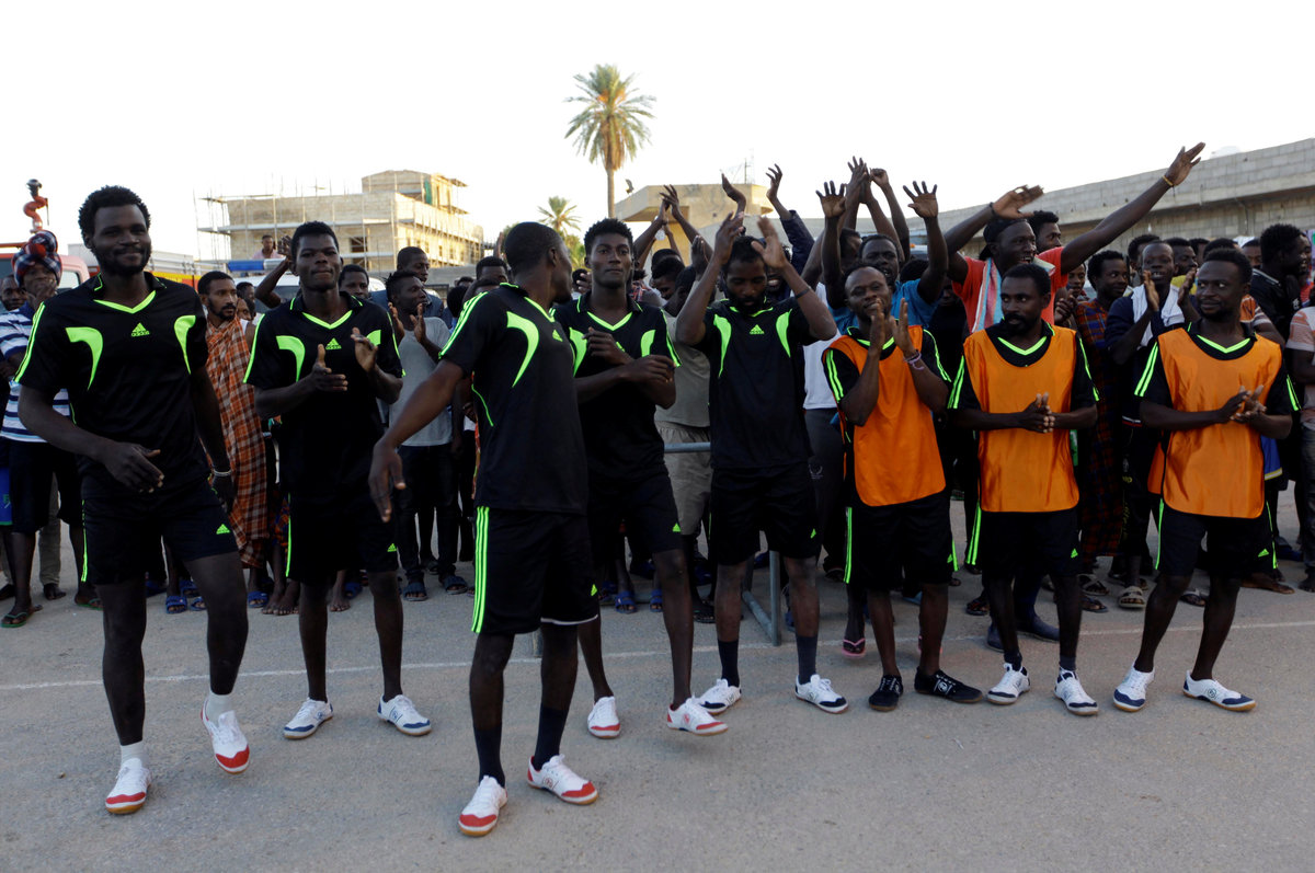 TRIPOLI (Reuters) - Detained in Libya and facing an uncertain future, migrants at one of Tripoli's biggest detention centres have at least one source of distraction: courtyard football.