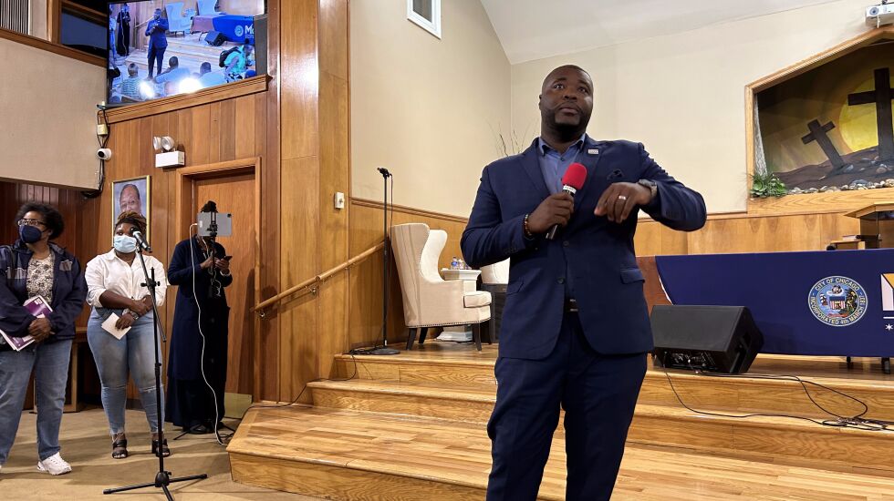 Local Ald. Ronnie Mosley (21st) led a ward meeting about the proposal Wednesday evening at Sheldon Heights Church of Christ, 11325 S. Halsted St., a longtime ward meeting place which also sits kitty-corner from the potential tent site.