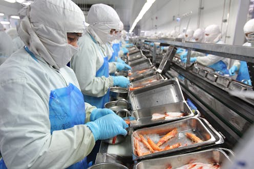 An estimated 400,000 migrants work in Thailand’s seafood processing sector in the province of Samut Sakhorn. Thailand produces approximately 40 per cent of global canned tuna, as well as frozen shrimp and other seafood products.
