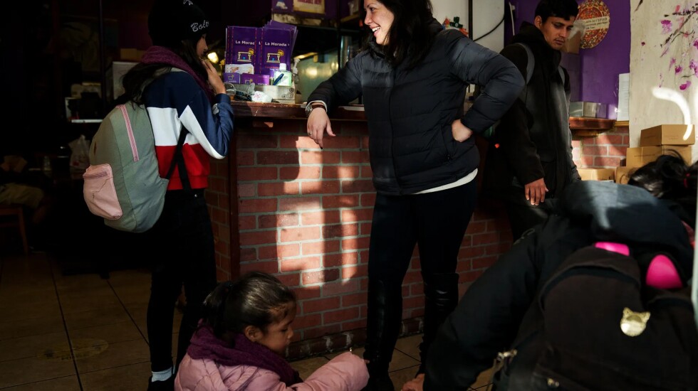 “Hi, I’m Ariadna,” Phillips said in Spanish as she ushered more migrants to the back of a pickup holding clothes and loaves of bread. “We’re your neighbors.”