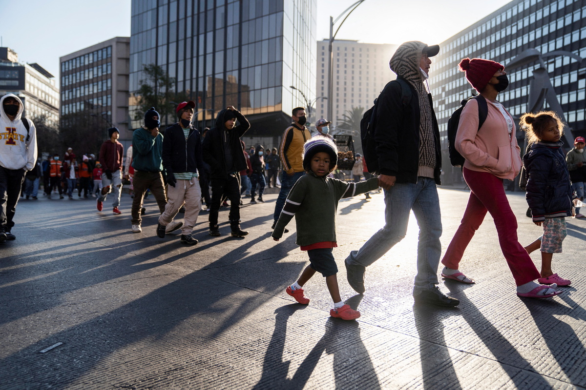 Led by protesters carrying a banner reading, "To migrate is not a crime, the criminal is a government that represses migrants," the migrants, some with very young children, marched through Mexico City to the government palace and demanded that President Andres Manuel Lopez Obrador's government change its policies.