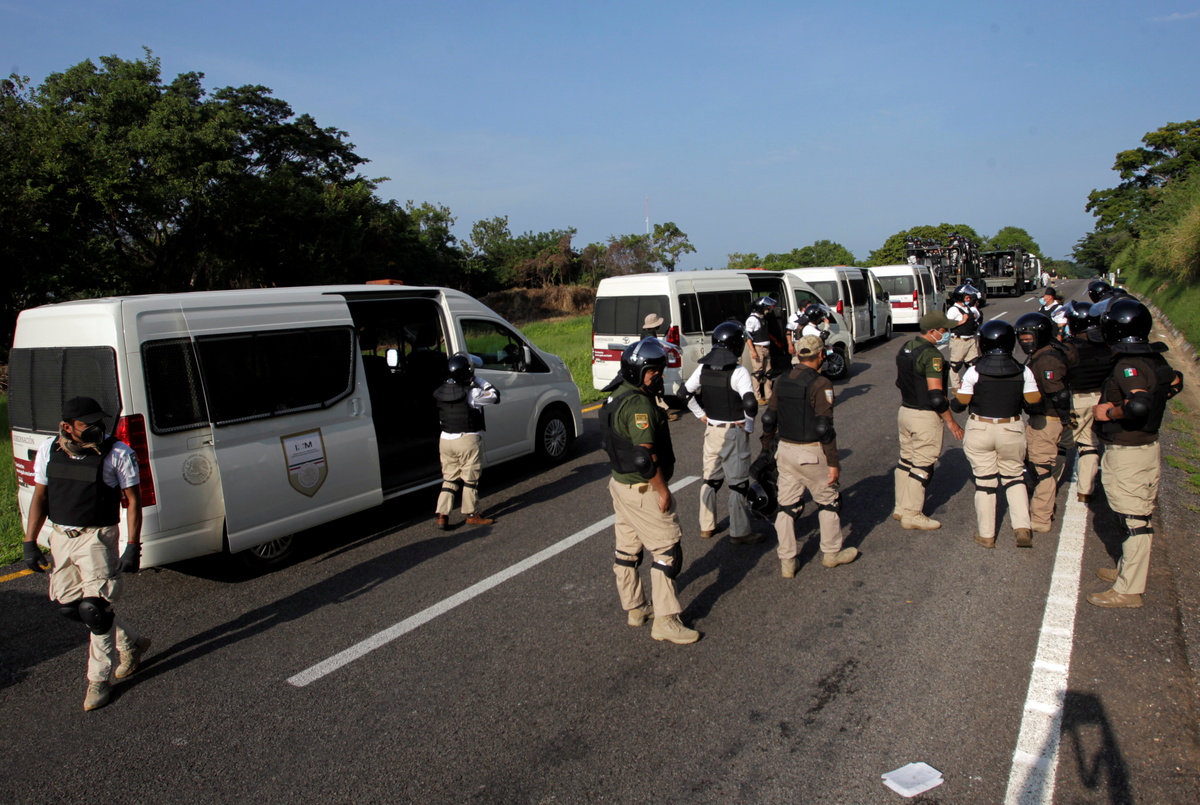 National Guard troops, who donned helmets and riot shields, confronted migrants, according to images on social media. Other videos shared with Reuters showed several migrants being detained by National Migration Institute agents.