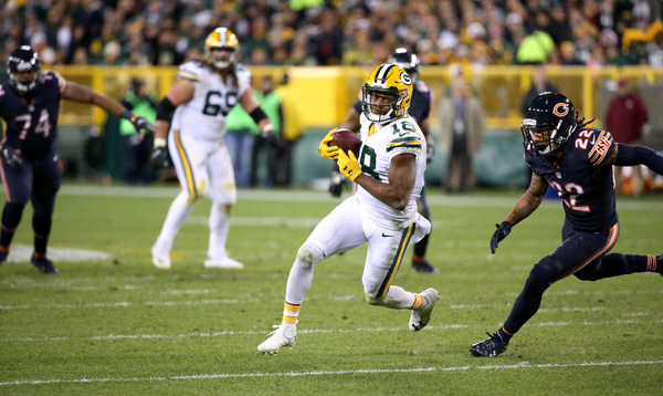 Extra point: The game was delayed 45 minutes for a thunderstorm between the first and second quarters. The teams cleared the field, and the crowd cleared the stands as the sky illuminated with lightning and a downpour began. The Bears trailed 14-0 at the time but had possession at the Packers' 47-yard line and a first down. But, eventually, a holding penalty, a dropped pass and a false-start penalty put them in a second-and-25 that forced a punt.