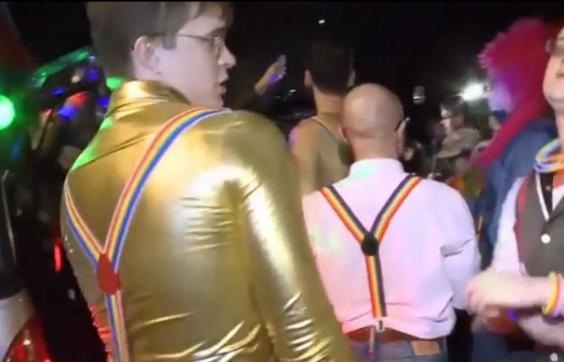 Some participants held glow sticks, while others bore signs with slogans such as "Love Trumps Hate" and "Make America Gay Again".