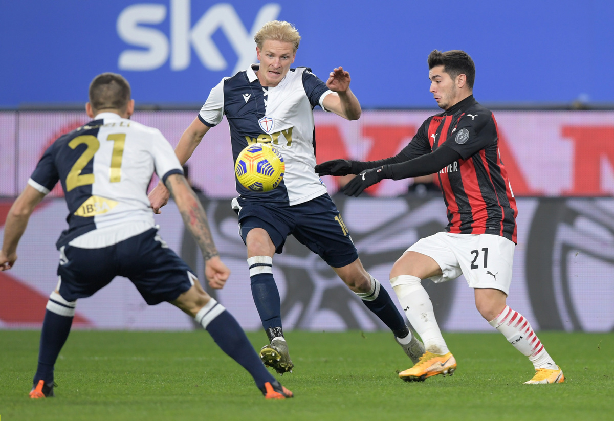 Milan finally broke the deadlock in the final minute of the first half, Kessie scoring from the spot after Theo Hernandez's header was blocked by Jakob Jankto's trailing arm.