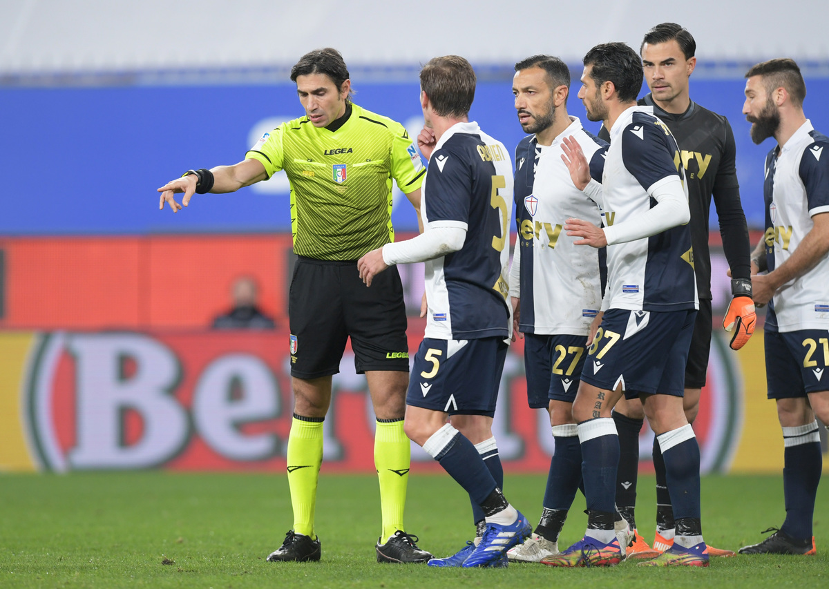The hosts wore special blue and white halved shirts, the original kit of the Andrea Doria club which merged with Sampierdarenese to form Sampdoria in 1946.