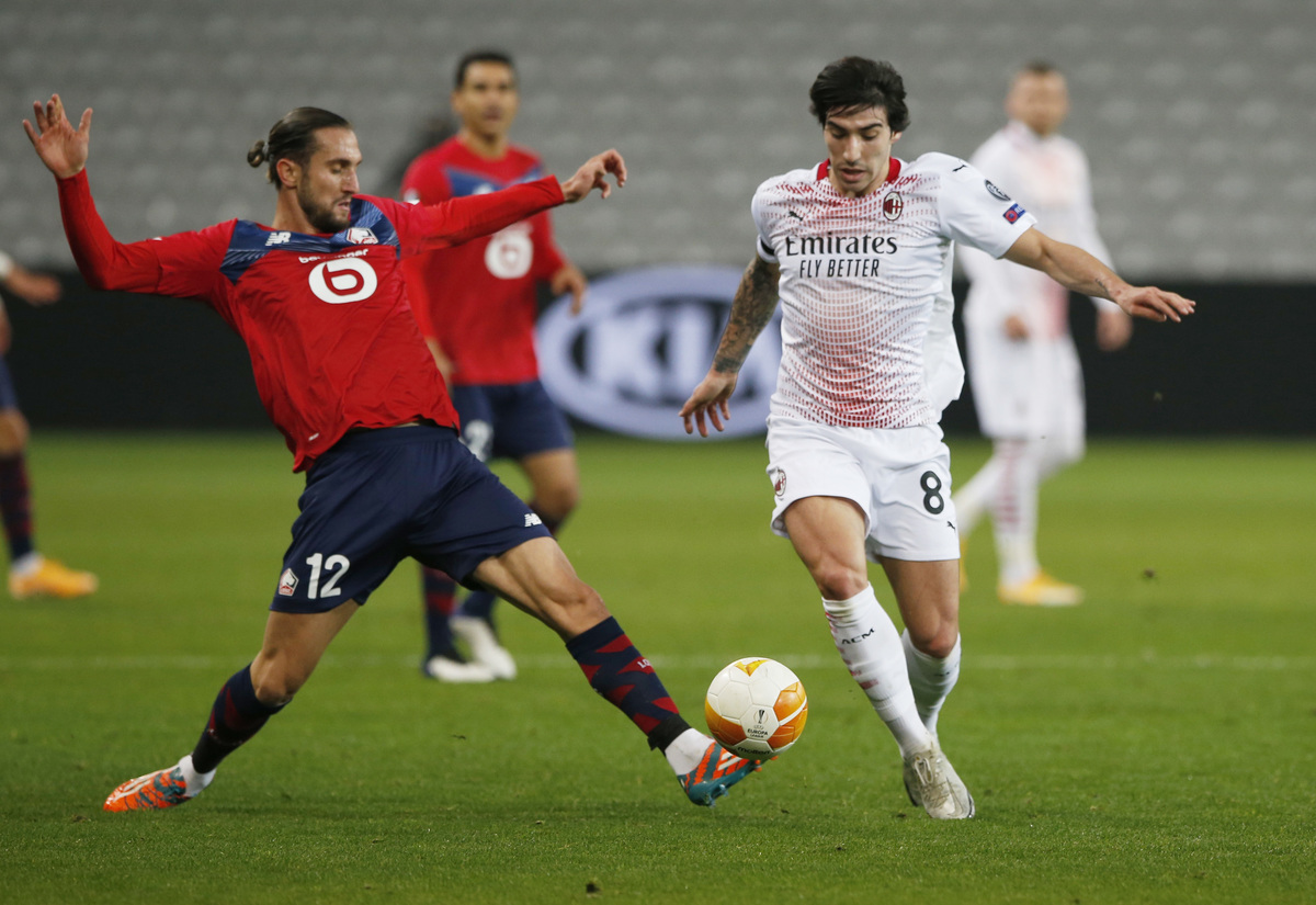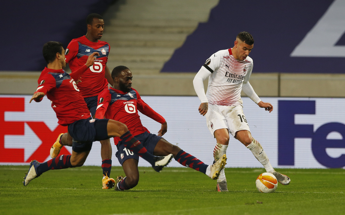 Serie A leaders AC Milan were held to a 1-1 draw by Lille in the Europa League on Thursday after a well-worked Jonathan Bamba goal cancelled out Samu Castillejo's effort for the Italian side.