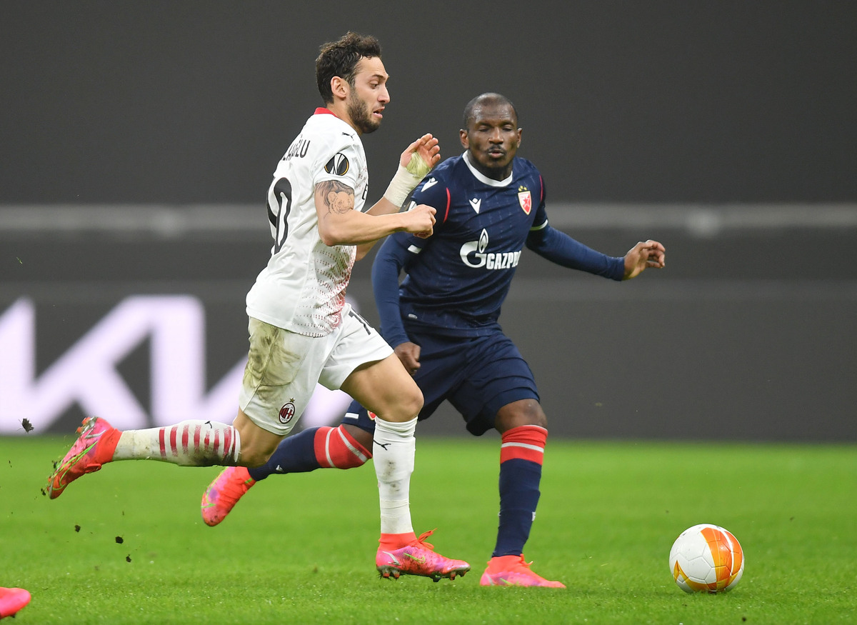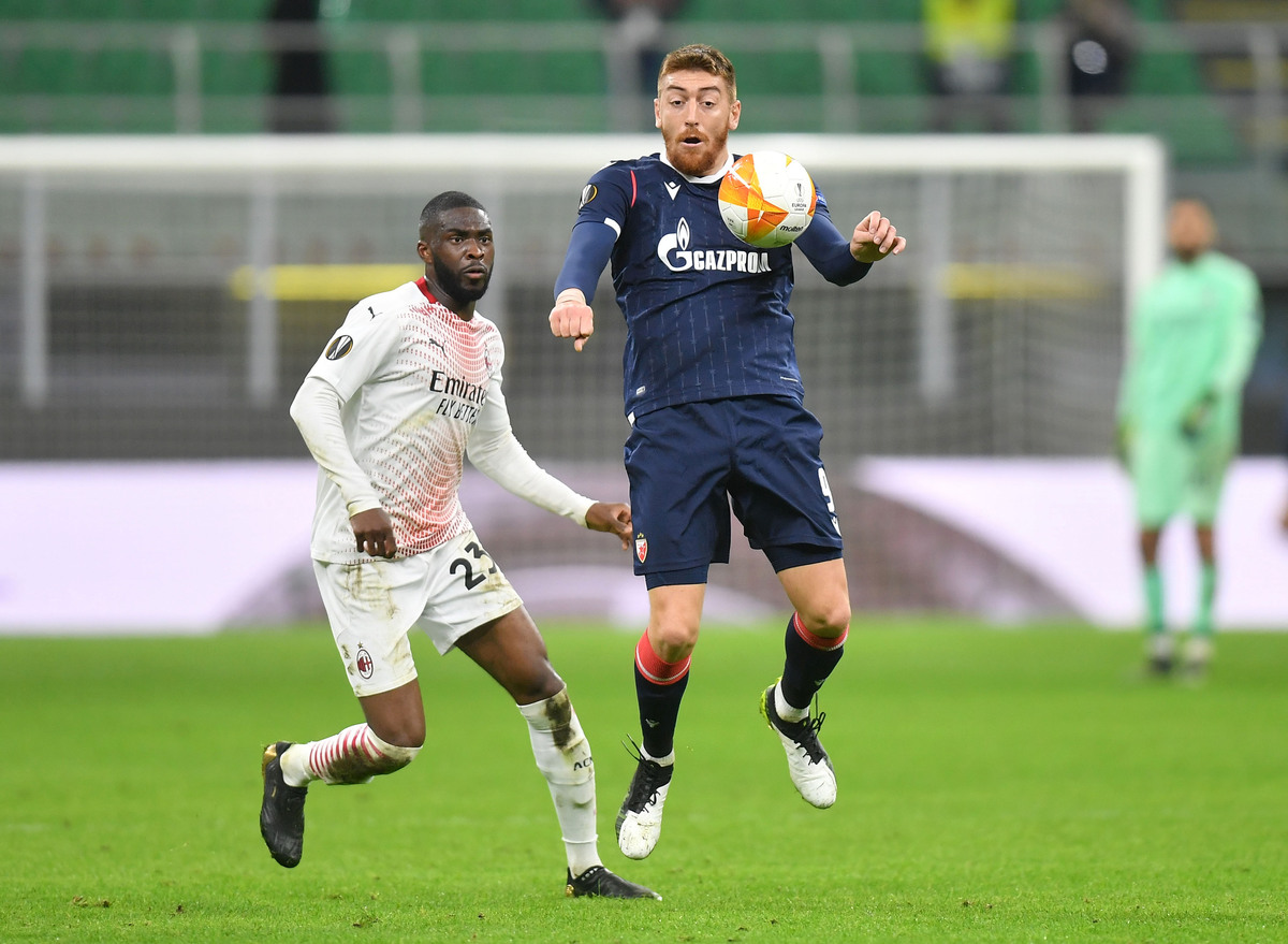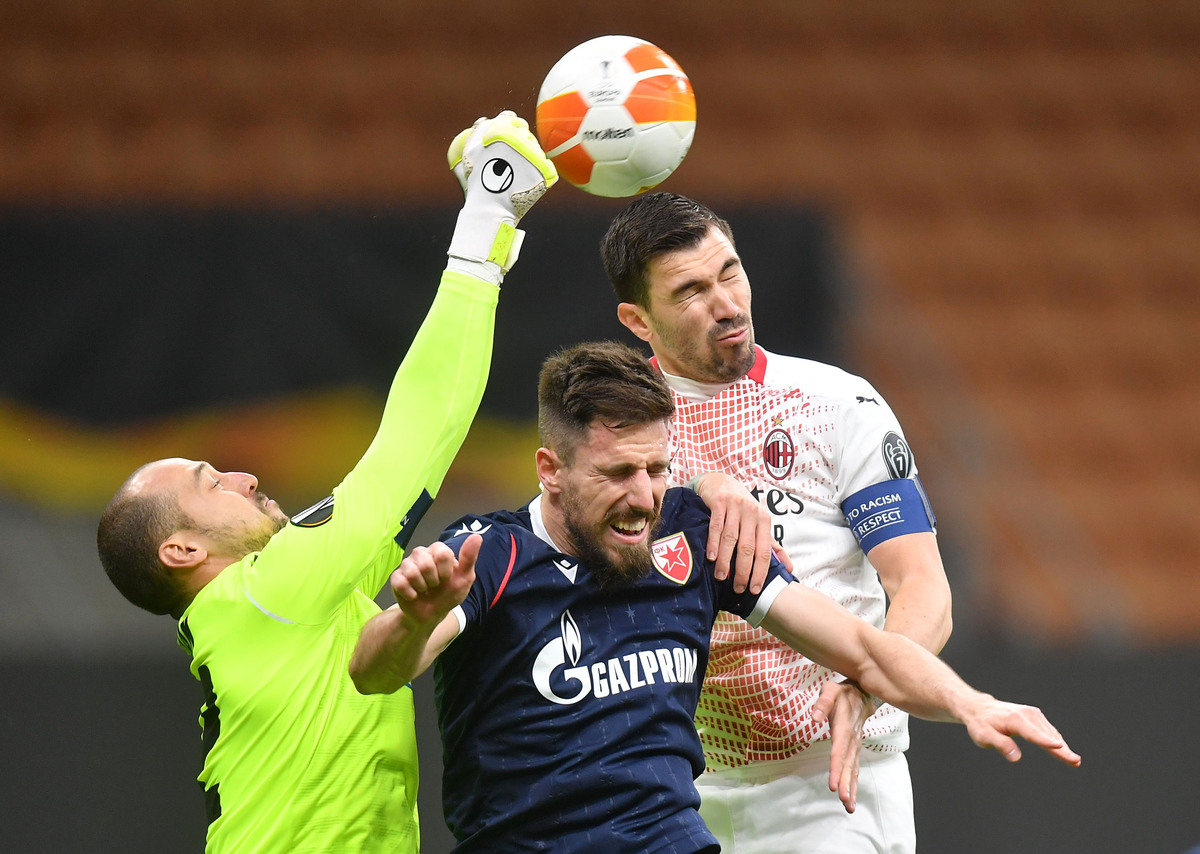AC Milan progressed to the last 16 of the Europa League on away goals after struggling to a 1-1 draw at home to Red Star Belgrade on Thursday, with the visitors playing the final 20 minutes with 10 men as the tie finished 3-3 on aggregate.
