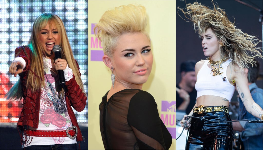 Cyrus first shot to fame as Hannah Montana when she was 13 years old. She played a normal girl with a secret life as a popstar – and when she transformed into Montana, she donned an iconic blonde wig with bangs.