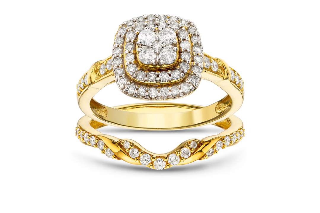A relatively affordable name in jewellery, H Samuel began in the 19th century as a watch maker. Nowadays, it's a go-to for timeless engagement rings that tap into trends, without blowing the bank. Case in point: this 9 carat yellow gold ring with a 0.66 carat diamond double halo ring. The centre cluster and striking two halos create sparkly impact.