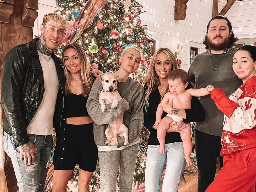 The singer spent the holidays with her family. On Christmas Day, Cyrus, 29, posted a photograph of herself holding one of her dogs alongside her family members at home with a Christmas tree pictured in the background.