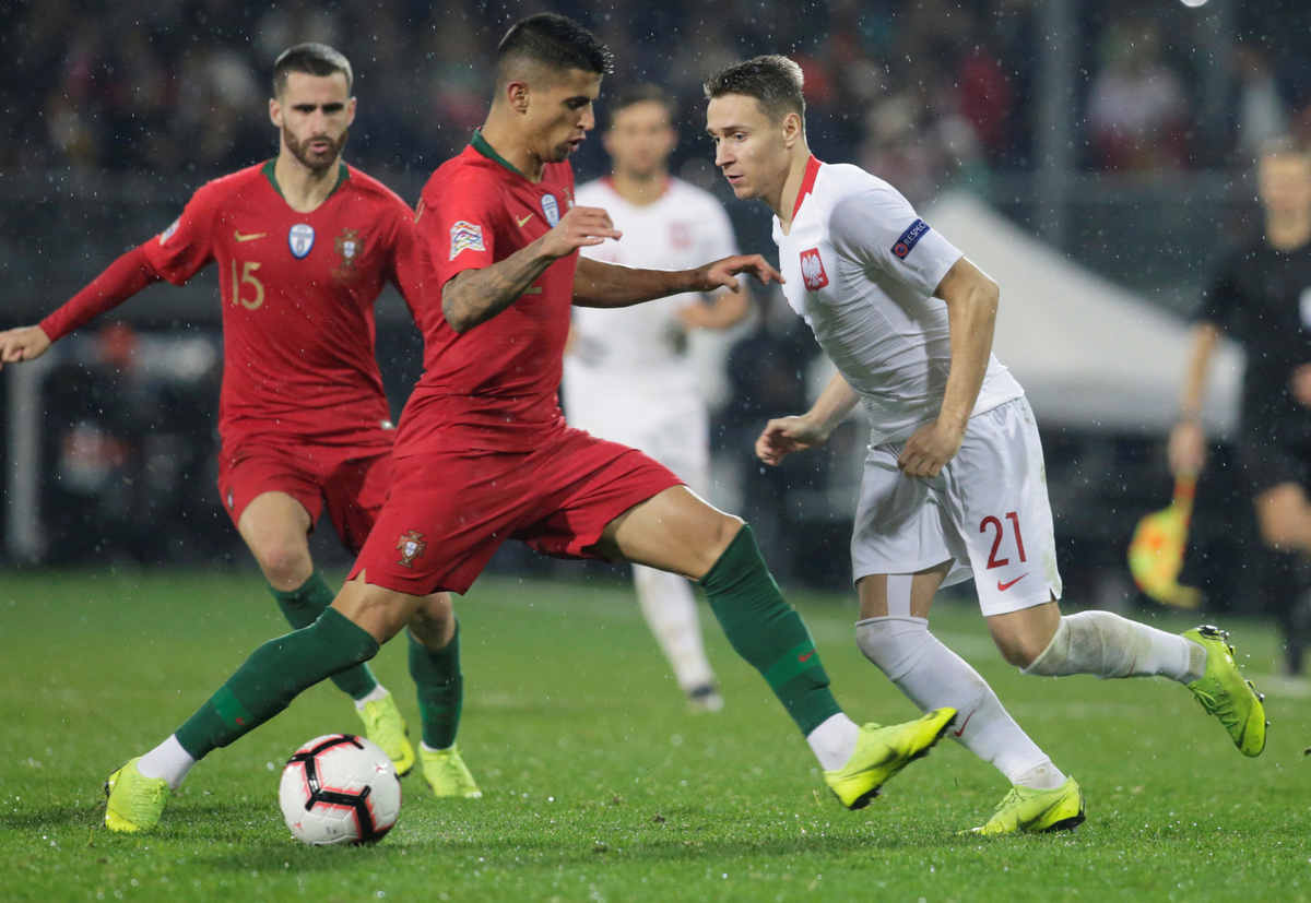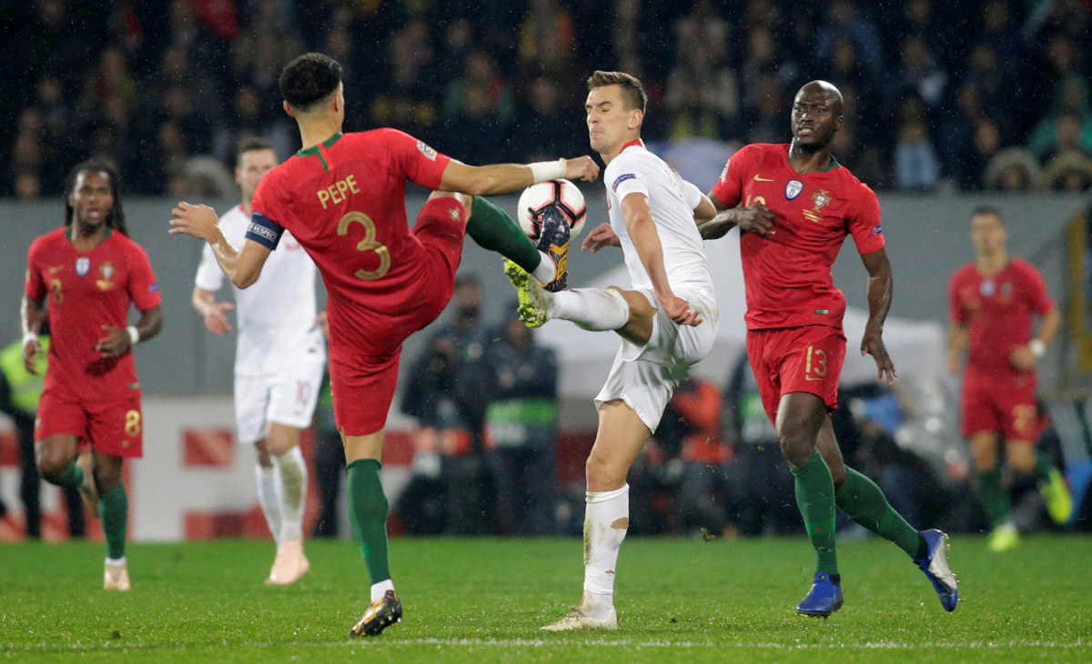 Soccer Football - UEFA Nations League - League A - Group 3 - Portugal v Poland - Estadio D. Afonso Henriques, Guimaraes, Portugal - November 20, 2018 Portugal's Pepe in action with Poland's Arkadiusz Milik REUTERS/Miguel VidalSoccer Football - UEFA Nations League - League A - Group 3 - Portugal v Poland - Estadio D. Afonso Henriques, Guimaraes, Portugal - November 20, 2018 Portugal's Danilo Pereira reacts after being shown a red card by referee Sergei Karasev REUTERS/Miguel VidalSoccer Football - UEFA Nations League - League A - Group 3 - Portugal v Poland - Estadio D. Afonso Henriques, Guimaraes, Portugal - November 20, 2018 Poland's Bartosz Bereszynski in action REUTERS/Miguel VidalSoccer Football - UEFA Nations League - League A - Group 3 - Portugal v Poland - Estadio D. Afonso Henriques, Guimaraes, Portugal - November 20, 2018 Portugal's Joao Cancelo in action with Poland's Przemyslaw Frankowski REUTERS/Miguel Vidal