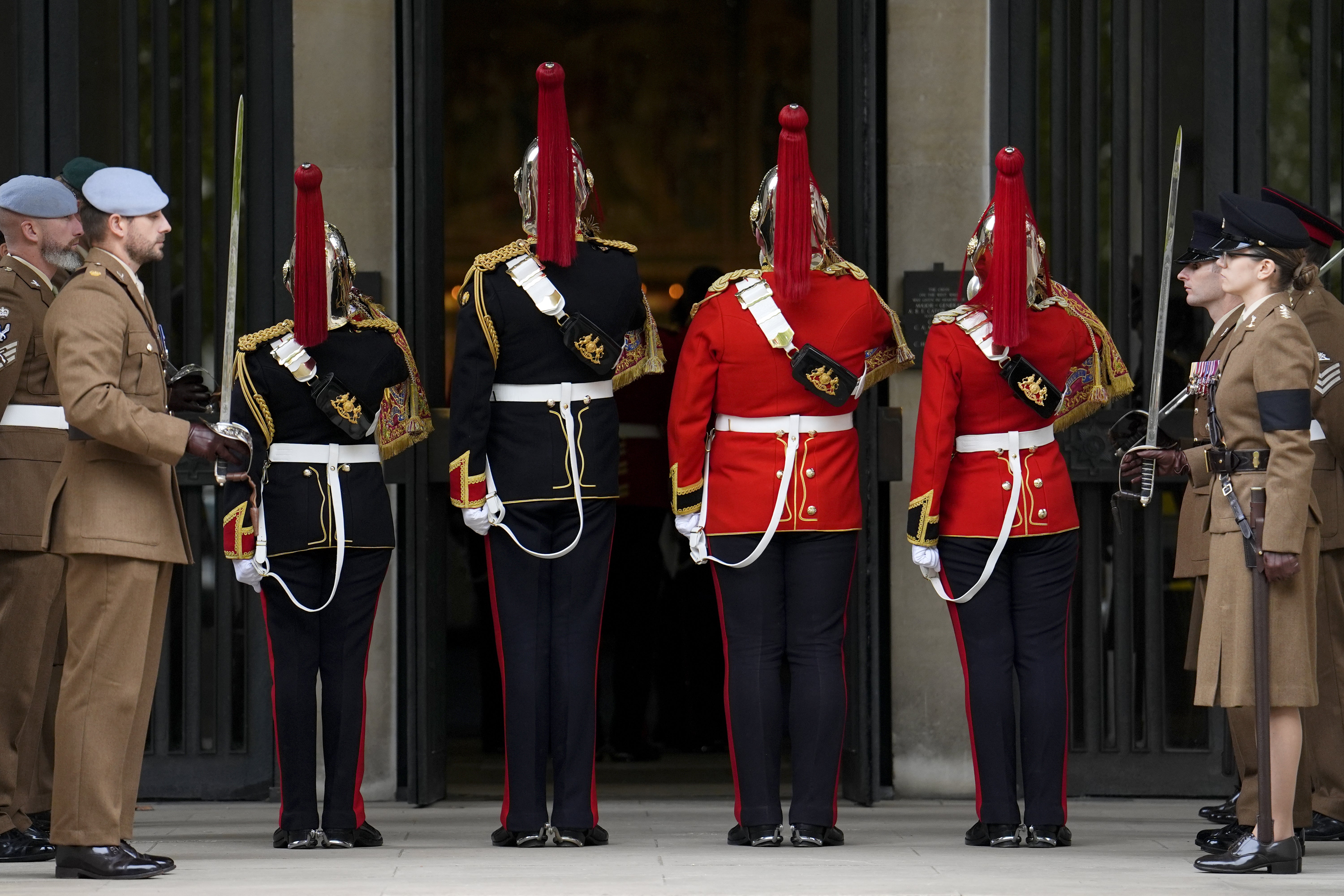 Her coffin was carried by members of the regiment, and the steps to the chapel were lined by dismounted dutymen from The Life Guards and The Blues and Royals Regiment.