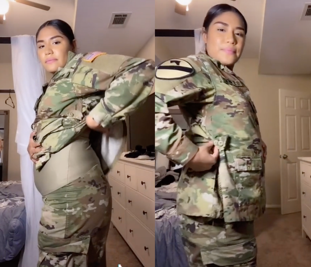In a TikTok video posted in January of last year, mom and army woman, @vivianalynnette had her maternity uniform on.