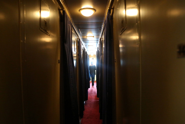 After their city visits, they return to their train cars, which include a domed observation car and a Pullman sleeper, to eat regional food prepared by on-board chefs, attend seminars and lectures, and exchange ideas. It's a full day _ starting at 6 a.m. and ending at 11 p.m.