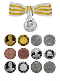 The Royal Thai Mint is also producing a set of three souvenir coins with the values engraved. The centrepiece weighs 20 grammes and is made of gold with a par value of 19,000 baht. The set retails for 40,000 baht.