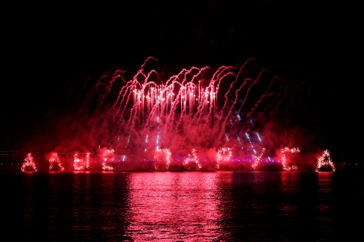 Fireworks explode along the Neva River, the during the Scarlet Sails festivities marking school graduation, in St. Petersburg, Russia,June 24, 2018. REUTERS/Henry Romero