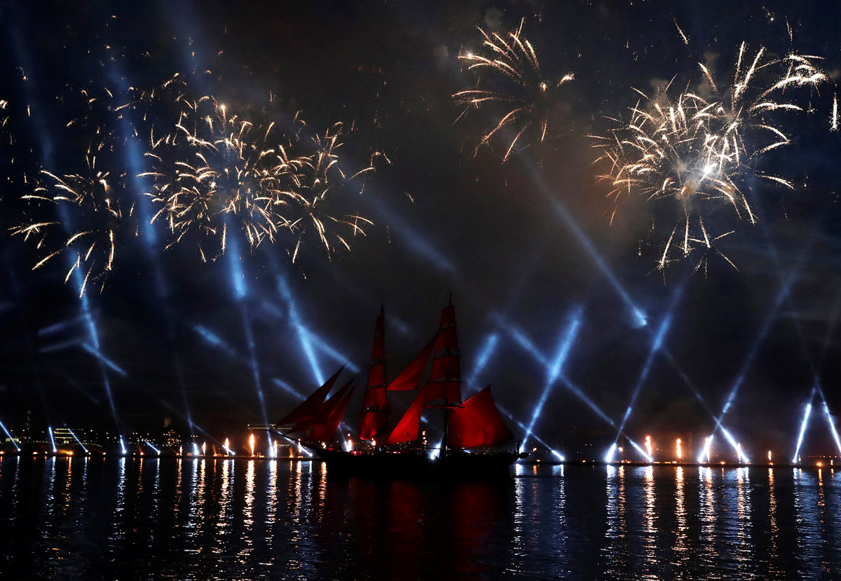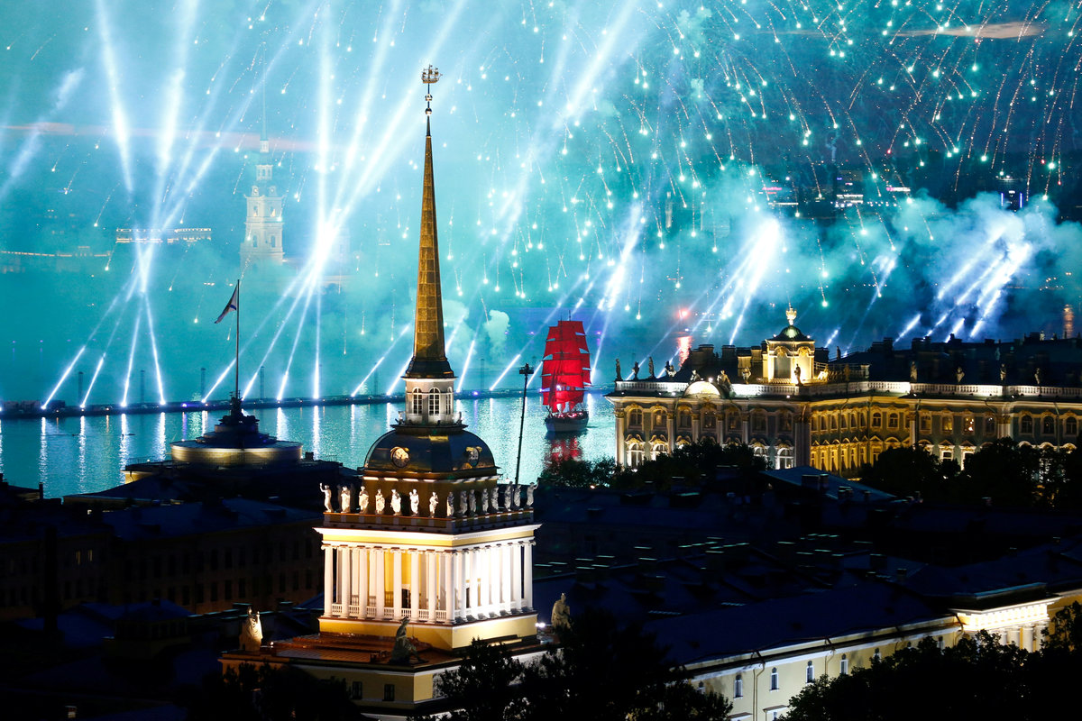Fireworks explode along the Neva River, the during the Scarlet Sails festivities marking school graduation, in St. Petersburg, Russia,June 24, 2018. REUTERS/Henry RomeroFireworks are seen over the Admiralty building, the Peter and Paul cathedral and the State Hermitage museum during the festivities marking school graduation in St. Petersburg, Russia June 24, 2018. REUTERS/Anton VaganovFireworks explode over the Peter and Paul Fortress during the Scarlet Sails festivities marking school graduation, in St. Petersburg, Russia,June 24, 2018. REUTERS/Henry RomeroFireworks explode over the Peter and Paul Fortress during the Scarlet Sails festivities marking school graduation, in St. Petersburg, Russia,June 24, 2018. REUTERS/Henry RomeroSweden's brig Tre Kronor with scarlet sails floats on the Neva River during the Scarlet Sails festivities marking school graduation, in St. Petersburg, Russia, June 24, 2018. REUTERS/Henry RomeroFireworks explode over the Peter and Paul Fortress during the Scarlet Sails festivities marking school graduation, in St. Petersburg, Russia,June 24, 2018. REUTERS/Henry RomeroFireworks explode over the Peter and Paul Fortress during the Scarlet Sails festivities marking school graduation, in St. Petersburg, Russia,June 24, 2018. REUTERS/Henry RomeroFireworks explode along the Neva River, during the Scarlet Sails festivities marking school graduation, in St. Petersburg, Russia,June 24, 2018. REUTERS/Henry RomeroFireworks are seen over the Admiralty building, the Peter and Paul cathedral and the State Hermitage museum during the festivities marking school graduation in St. Petersburg, Russia June 24, 2018. REUTERS/Anton VaganovFireworks are seen over the Admiralty building, the Peter and Paul cathedral and the State Hermitage museum during the festivities marking school graduation in St. Petersburg, Russia June 24, 2018. REUTERS/Anton VaganovSweden's brig Tre Kronor with scarlet sails floats on the Neva River past the Admiralty building, the Peter and Paul cathedral and the State Hermitage museum during the festivities marking school graduation in St. Petersburg, Russia June 24, 2018. REUTERS/Anton Vaganov