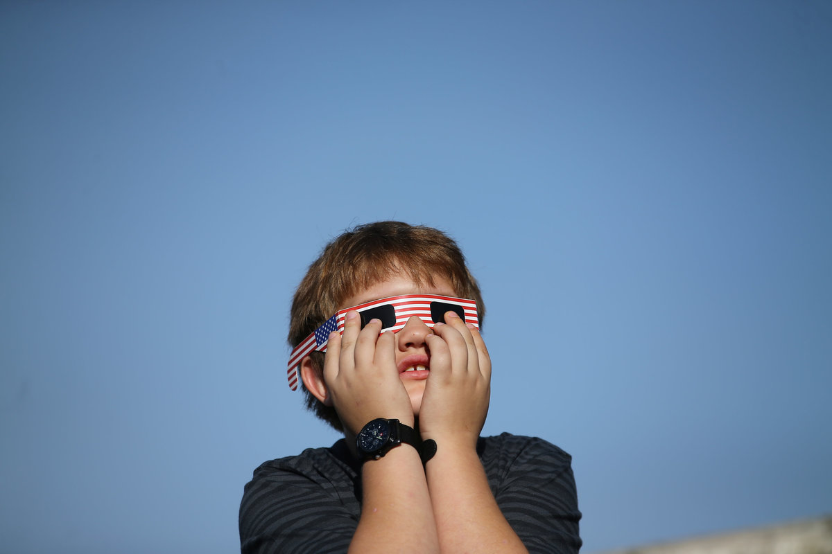 Even President Donald Trump stepped out of the White House to see the eclipse, though he was spotted briefly looking up without protective glasses, which can cause eye damage, as an aide yelled "Don't look!"