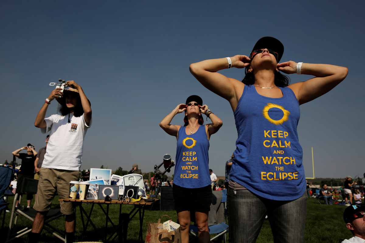 Many people trekked to remote national forests and parks of Oregon, Idaho and Wyoming. Those in cities along the path like Kansas City, Missouri, and Nashville, Tennessee, were able to simply walk outside.
