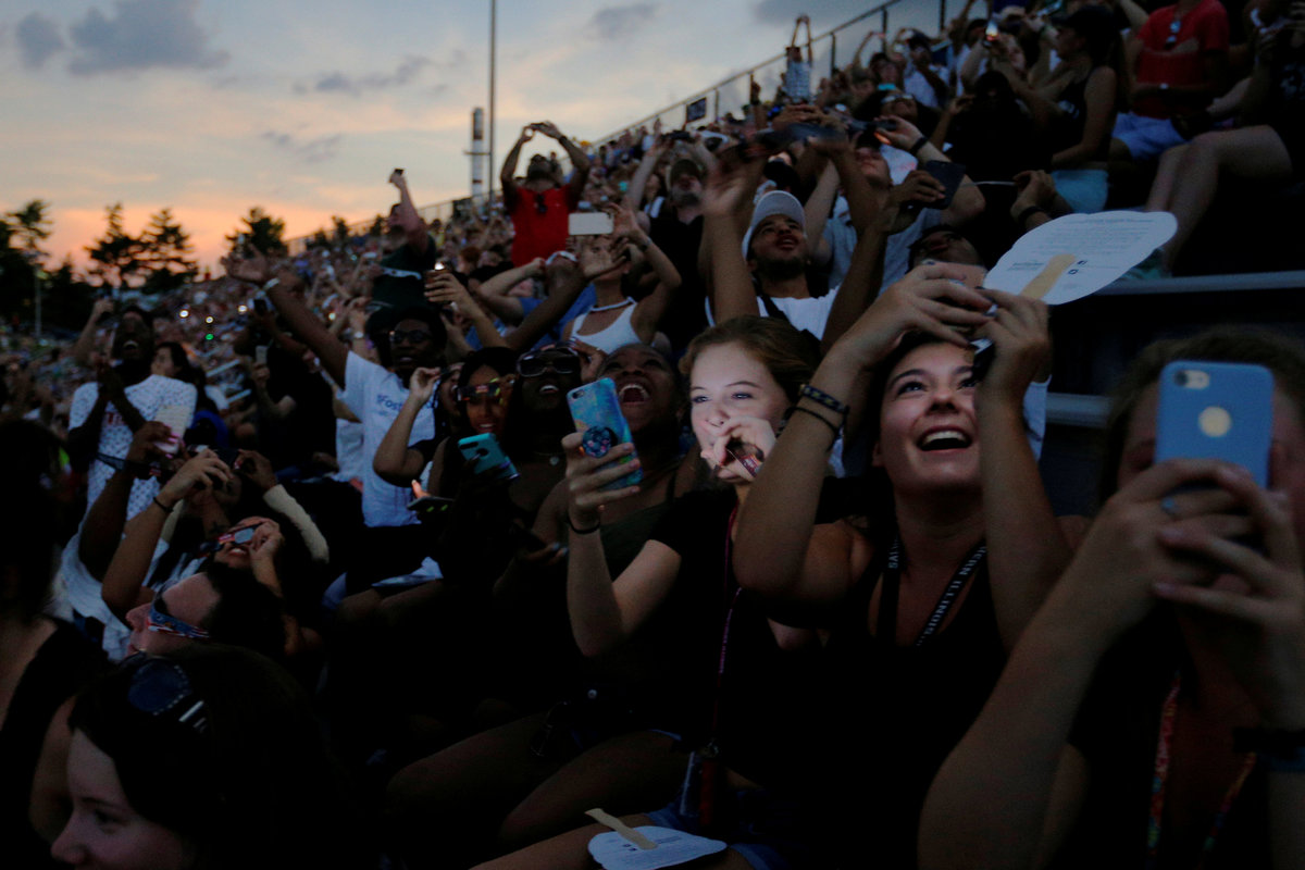 A number of towns within the eclipse's path set up public events. At the Southern Illinois University campus in Carbondale, Illinois, the 15,000-seat football stadium was sold out for Monday.