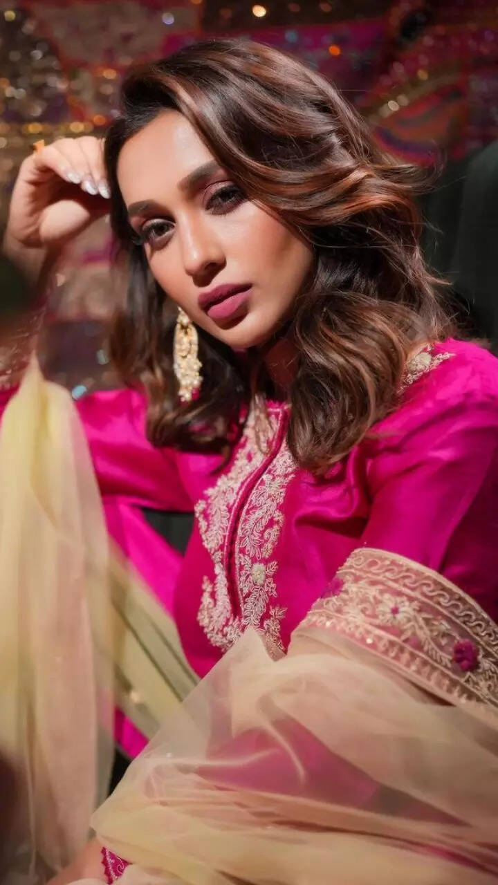 The \'Villain\' actress glows in this rani pink embroidered kurta set for a photoshoot.