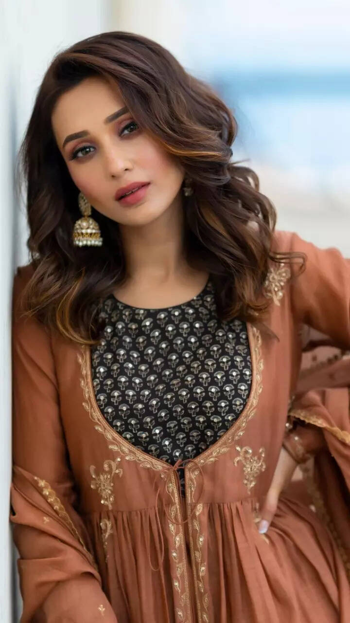 The \'Crisscross\' actress shines bright in a beautiful hazelnut ruching kurta set.