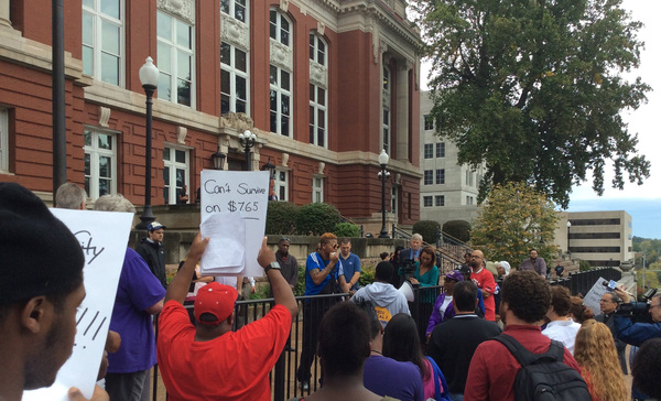 Rogers said she lived in low-income housing in downtown St. Louis with seven relatives. "I wish somebody at the top could come and see how hard we work and whether they can support their families off $7.70 an hour."