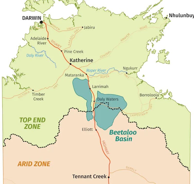 In a statement provided to The Conversation’s editorial team, the department said there were a number of aquifers and management zones in the Mataranka and Larrimah area – some arid and most top end.
