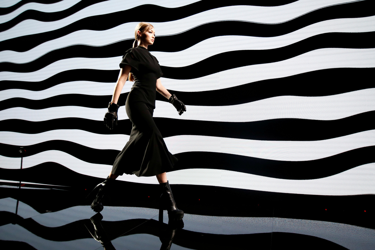 Top models Kendall Jenner, Irina Shayk, the Hadid sisters and Kaia Gerber showed off Versace's Fall/Winter 2020 line while the designer herself only appeared in virtual form, her face projected on screens along the catwalk before and after the presentation.