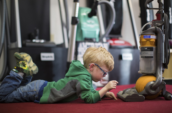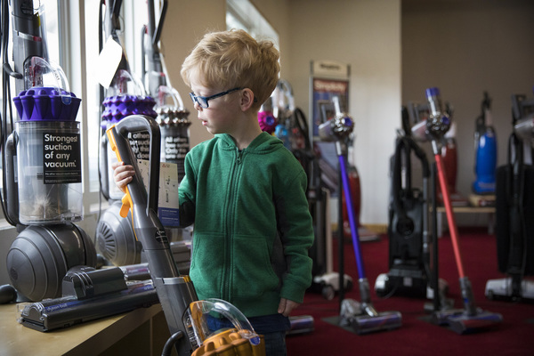 When it's time to leave the store, Ben will hug and kiss the floor models that are about as tall as him and say, "Thank you, vacuum."