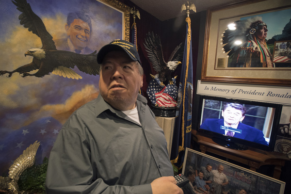 Crooks is bipartisan in his presidential passion. He honors Ronald Reagan, his favorite Republican, with his own room. The walls are covered with posters from "Hellcats of the Navy" and other Reagan movies as well as a massive eye-catching photo of Ronald and Nancy Reagan dressed to the nines attending a White House event.