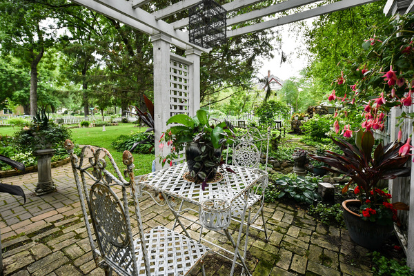 Jorgenson and her former husband, Scott, started the garden together. Together, they dug and planted, hauled rocks, granite and statuary. With the help of Jorgenson's parents, they also installed the painted picket fence that perfectly frames the traditional house.