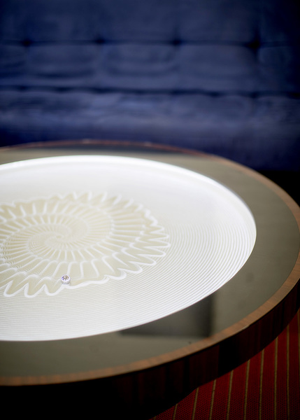 But now he's making smaller, glass-covered versions _ 2 to 4 feet in diameter _ that are intended to be used in the home as a coffee table or an end table. They function as furniture and as art.