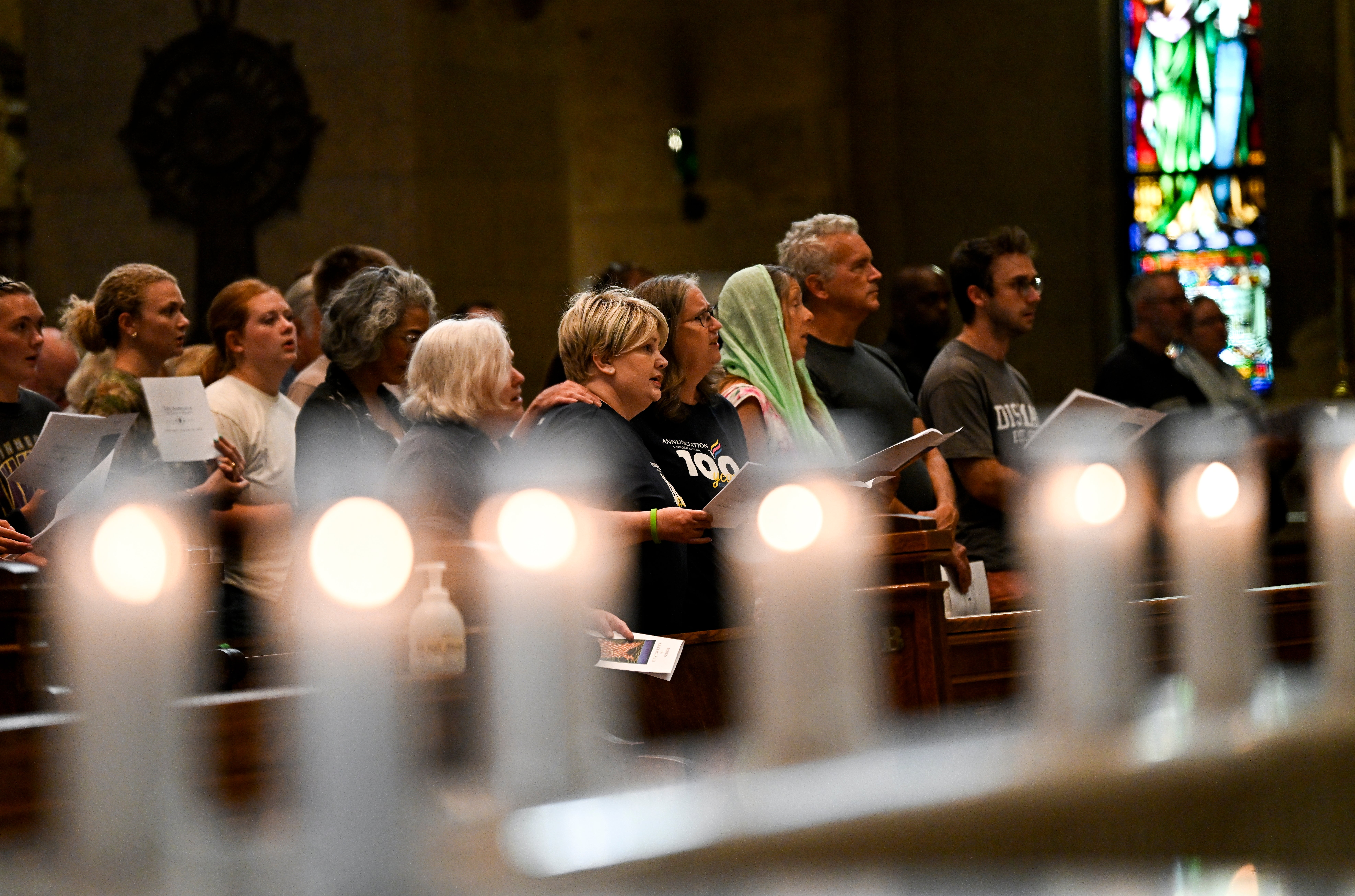 In pictures: People visit a make-shift memorial at Annunciation Catholic Church after the Wednesday's shooting