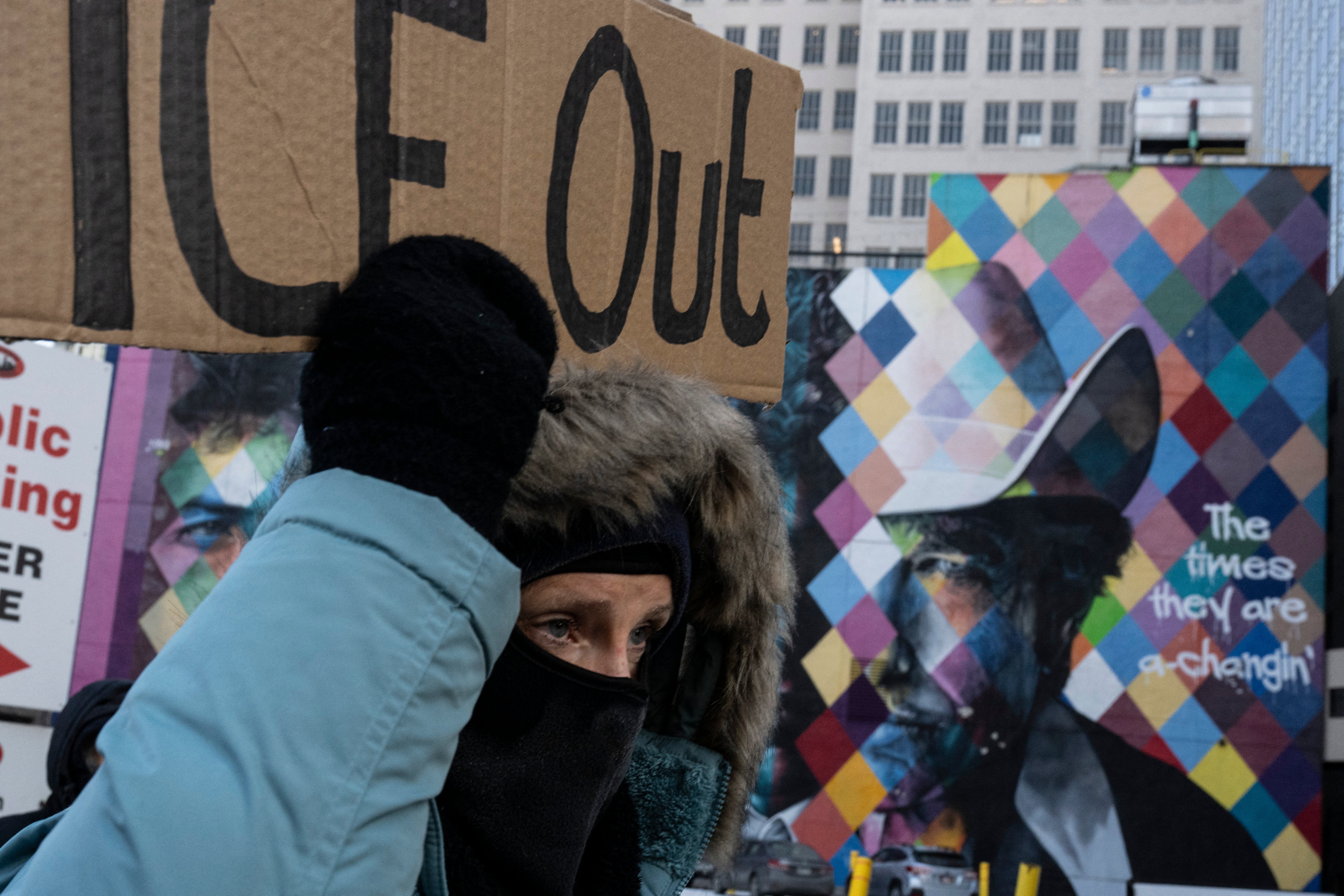 Despite the bitter cold, hundreds of protesters gathered to demand ICE leave the city.