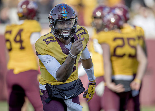 Croft quickly cashed that in, keeping the ball on a beautiful option fake, sprinting 73 yards for a touchdown and a 20-7 Gophers lead with 11:42 left in the half. The extra point failed because of a bad snap.