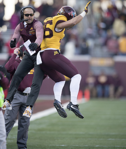 The game began perfectly for the Gophers, when Smith returned that opening kickoff for the TD, cutting back, shedding an arm tackle attempt and sprinting down the left sideline for a 100-yard play. Smith added 134 rushing yards and finished with 279 all-purpose yards.