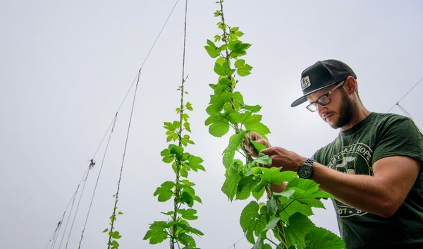 Sannerud and his partner, Ben Boo, hatched a plan to grow hops as students at the University of Minnesota and have been experimenting with different varieties on 3 acres of Sannerud's grandfather's farm, selling them to local brewers.